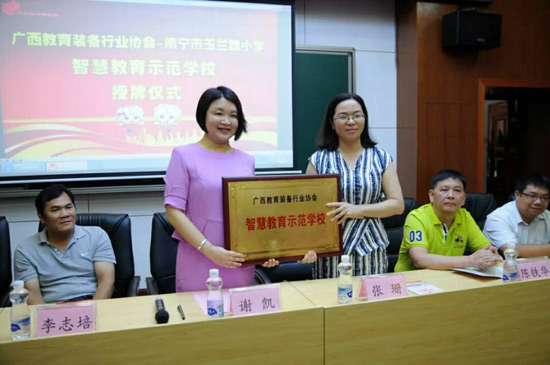 2018年6月27日上午,廣西教育裝備行業(yè)協(xié)會(huì)智慧教育示范學(xué)校掛牌儀式在南寧玉蘭路小學(xué)舉行,標(biāo)志著南寧市玉蘭路小學(xué)新時(shí)代教育信息化發(fā)展駛?cè)肓丝燔嚨溃哂欣锍瘫街匾饬x。與會(huì)領(lǐng)導(dǎo)、全國教育裝備界的各知名企業(yè)代表、愛心人士、家長代表、教師代表,一同出席了活動(dòng),見證了這一歷史性的時(shí)刻。